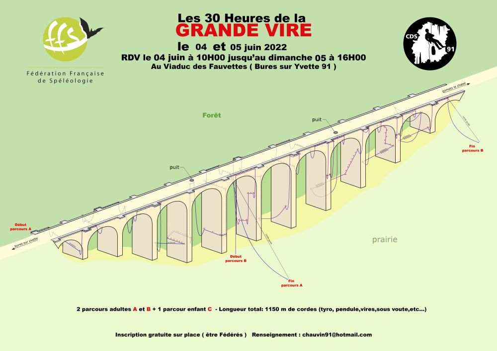 Le « viaduc des Fauvettes » à Gometz le Chatel dans le 91 est un grand viaduc au milieu de la foret équipé chaque année par de beaux parcours spéléo grâce à 1150 mètres de cordes et 650 amarrages mis en place par Franck CHAUVIN et son équipe :